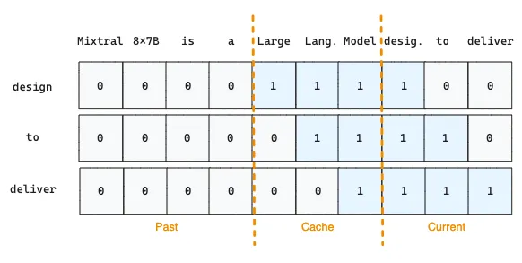 最后,SWA 的最后一部分内存优化依赖于预填充和分块(Pre-fill and Chunking)策略,作者将非常大的输入序列切割成许多相同大小(大小为 W)的较小块,并预填充键值缓存以限制内存的使用。以同样的例子为例,在处理大小为3(W=3)的 'design to deliver' 块时,模型可以通过使用滑动窗口(sliding window)访问当前块和缓存中的块,但无法访问过去的tokens,因为它们位于滑动窗口之外。