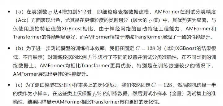 在上述数据中,我们将引入了算数特征交互的AMFormer架构与经典的XGBoost和Transformer架构对比。实验结果显示: