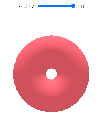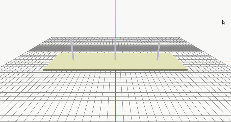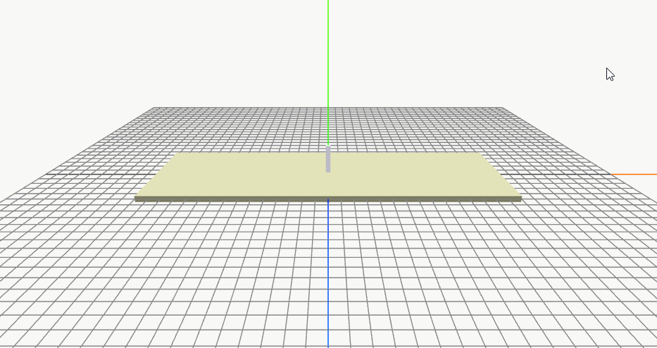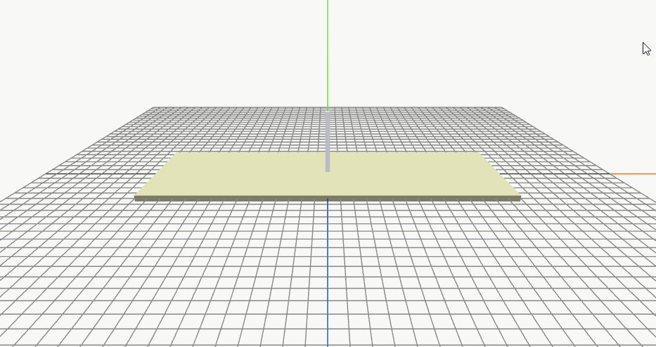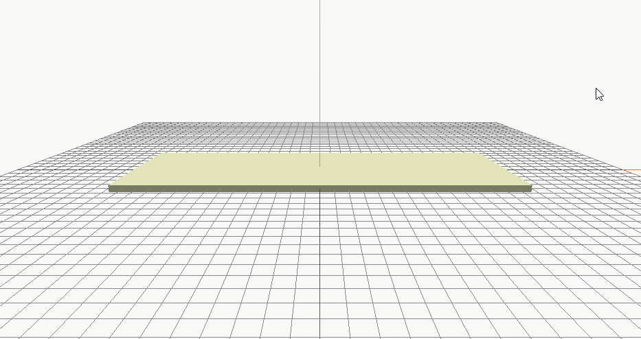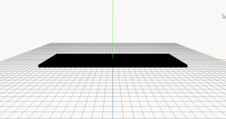 运行上述代码后,桌台并没有在视图中“显示”出来。这是因为添加到场景中的桌台默认位于三维坐标原点 (0, 0, 0),而相机的默认位置也是三维坐标原点,此时相机位于桌台内部,相机视野范围内无法看到桌台。所以我们需要调整相机的 z 轴坐标位置,例如: