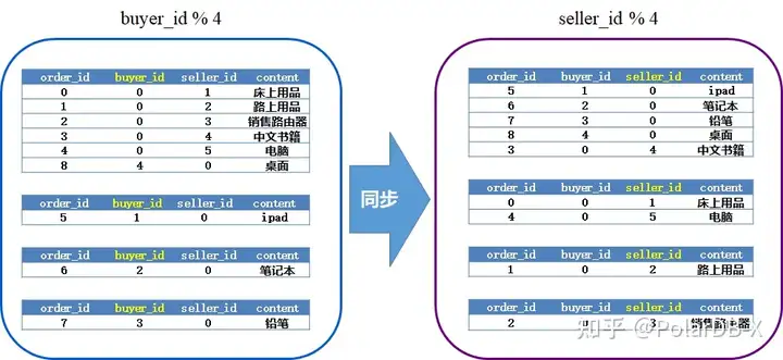 但问题来了,这两类SQL都很高频,选了buyer_id做分库分表键,那按seller_id查就会全库全表扫描;如果按seller_id做分库分表键,那按buyer_id查就会全库全表扫描。