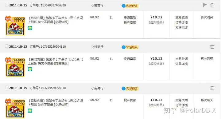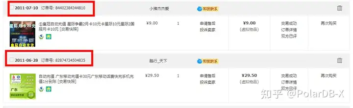 比如这是我最近的3个订单,和10年前的3个订单。其订单号分别是: