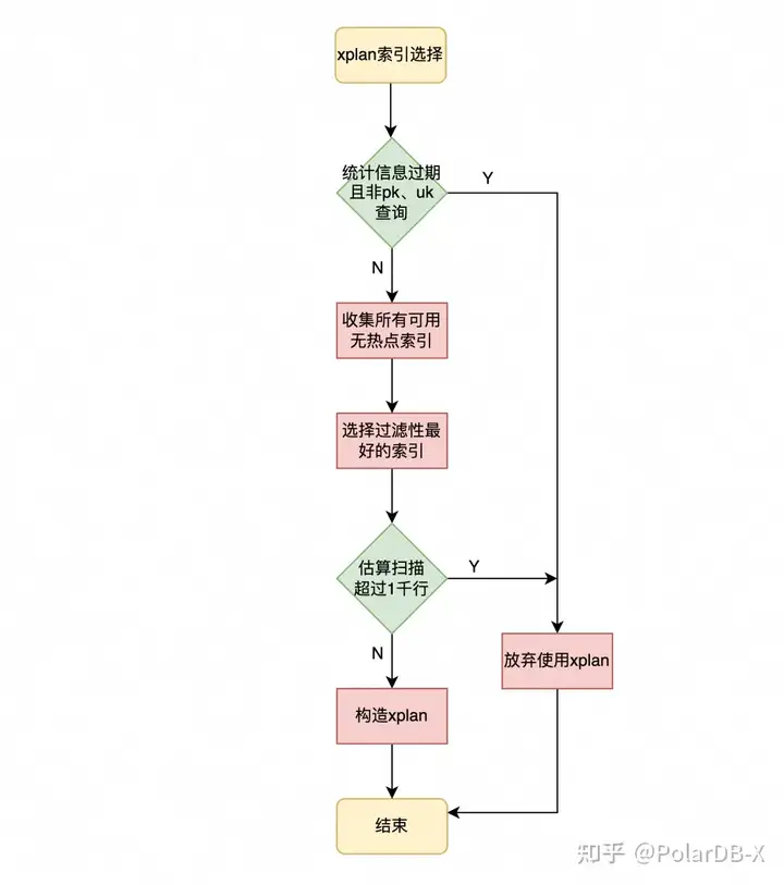 XPlan索引选择会尽量减少错选的概率,具体流程下图所示: 首先检查当前表的统计信息是否过期,由于统计信息可能因为各种原因无法自动更新,没有统计信息的索引选择就是乱猜,所以统计系信息过期之后会禁用XPlan,有个小优化是pk、uk的查询不受此影响。