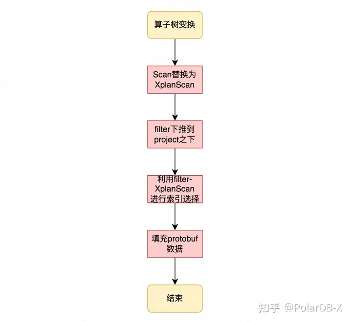 XPlan核心问题有两个:如何选择索引以及如何进行执行计划传输和执行。执行计划传输和执行的大致逻辑如下图所示:在算子树上将filter尽量下推,用filter-XplanScan的pattern进行索引选择并记录到XplanScan中,基于算子树填充protobuf,利用私有协议传输给DN解析出来后直接对Innodb数据进行读取和过滤。