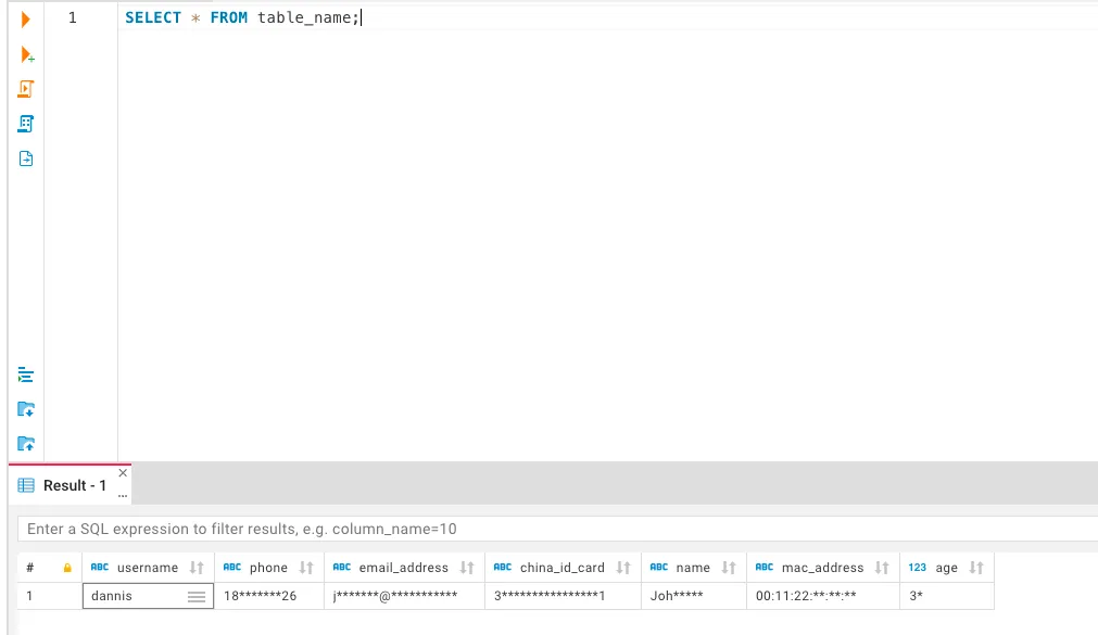 本期新增了对数据源的脱敏支持,您可以灵活设置数据源的脱敏能力,确保敏感数据的安全性。开启数据源上的脱敏能力后,使用 SQL 工作台查询该数据源上的数据时,将会获得脱敏后的效果,让您的数据查询结果更安全。