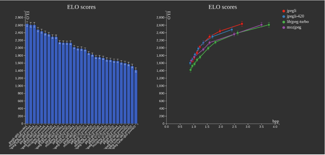 为了量化 Jpegli 的图像质量改进,项目团队将 Jpegli 与 libjpeg-turbo 和 MozJPEG 进行了比较。