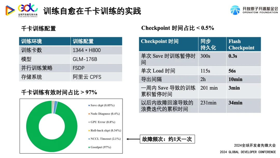 - 训练故障自愈:将千卡分布式训练有效时间占比 >97%,降低大规模训练故障的算力成本;
