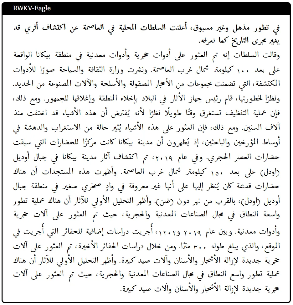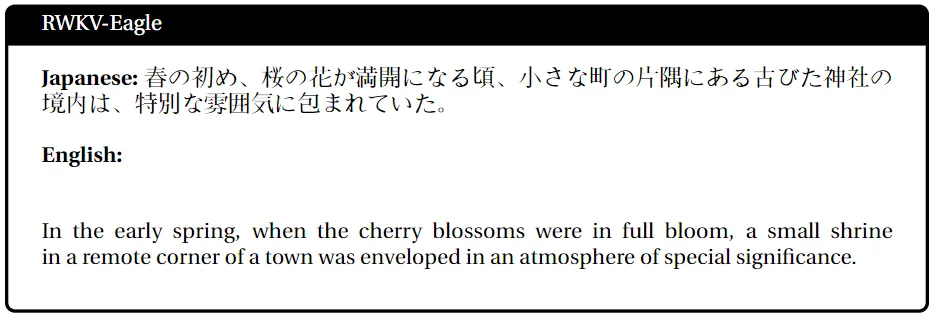 新的 RWKV 架构还使用一个包含 1.12 T tokens 的新多语言语料库和一个基于 greedy matching 的快速分词器,以增强 RWKV 的多语言能力。