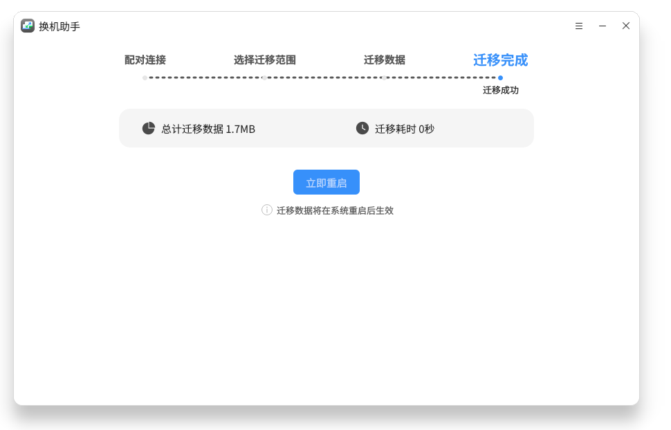 总而言之,openKylin换机助手是一款能够让用户轻松应对电脑更换和升级时数据迁移难题的实用工具。它不仅提高了用户的工作效率,还能减少用户在数据迁移过程中的烦恼。它可以帮助你轻松地迁移电脑数据,省去繁琐的操作和时间。如果你正在考虑换机或者已经购买了新电脑,那么不妨试试这款神器吧!让openKylin换机助手成为你的得力助手,让数据迁移变得轻松愉快。