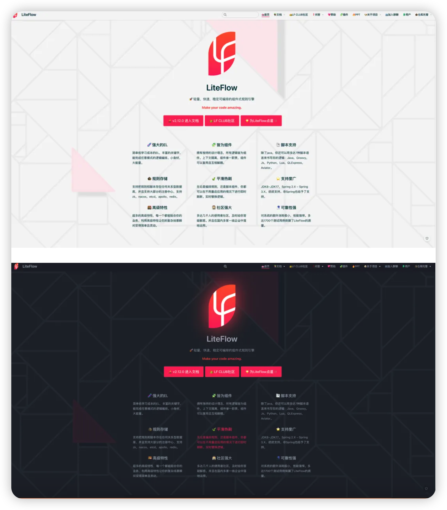 同时v2.12.0更换了slogan,这个版本的slogan为:Make your code amazing。我们希望使用了LF能帮助开发者把他们的代码变得更加灵巧且令人惊叹。