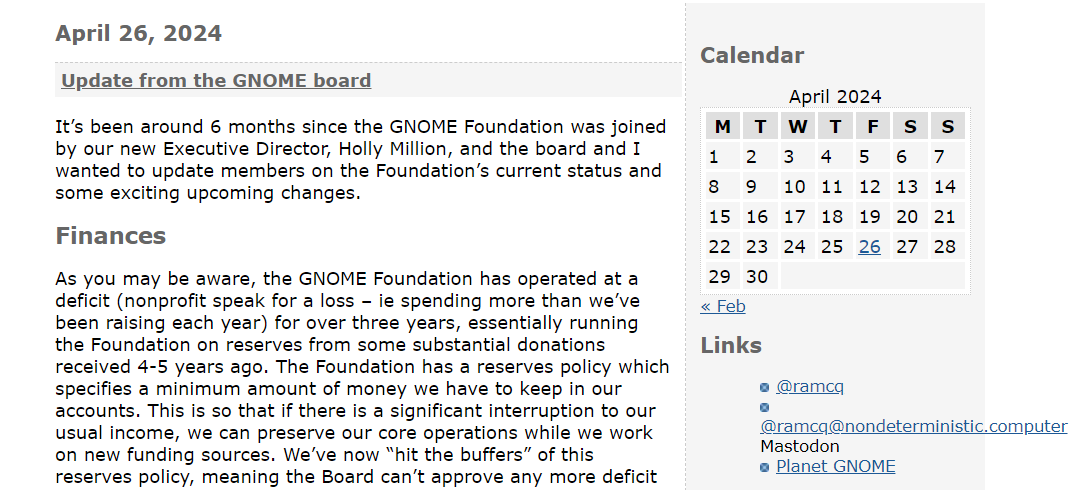 GNOME 基金会主席 Robert McQueen 于日前发布了一篇公告称,在连续赤字三年后,基金会将致力于推动更多新的筹款计划以稳定局势。