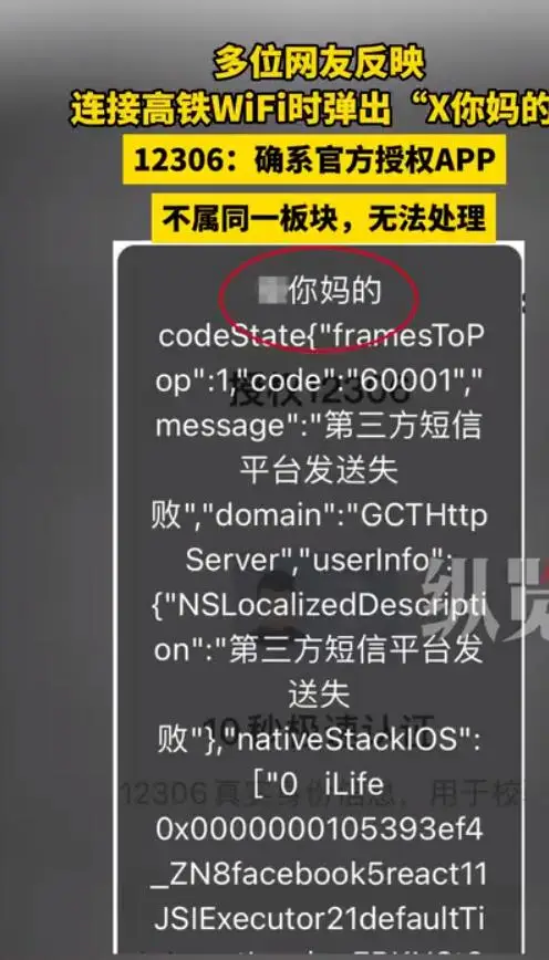 4月28日,多位网友发帖称登录国铁吉讯APP(原掌上高铁)连接高铁WiFi时,APP弹窗出现“X你妈的”提示语。