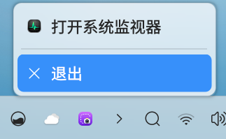 鼠标右键菜单可退出系统监视器或激活系统监视器窗口,鼠标左键单击激活系统监视器窗口。