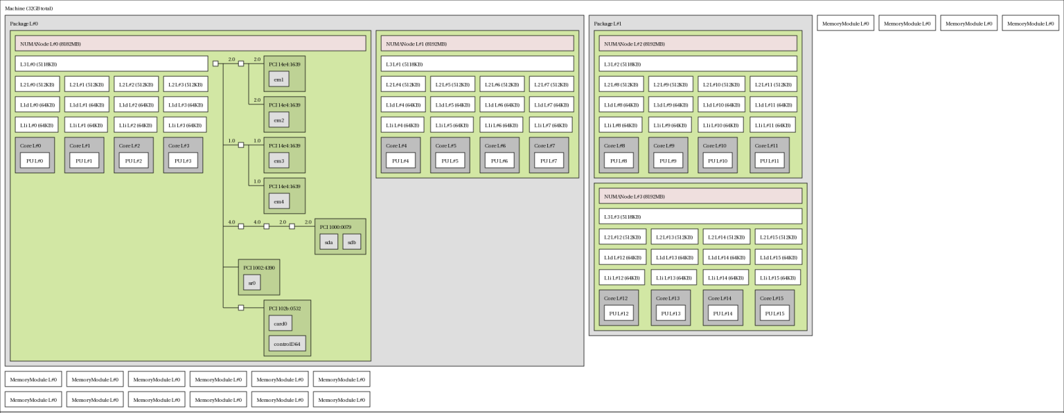 您还可以使用 lstopo 显示架构并显示 NUMA 核心。这是另一个例子: