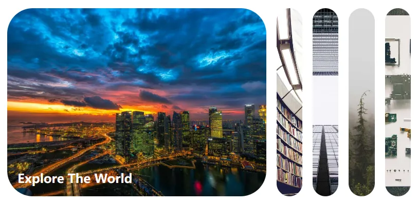 我们甚至可以单独使用 CarouselIndicator 组件,实现一个很漂亮的手风琴式折叠卡片效果。