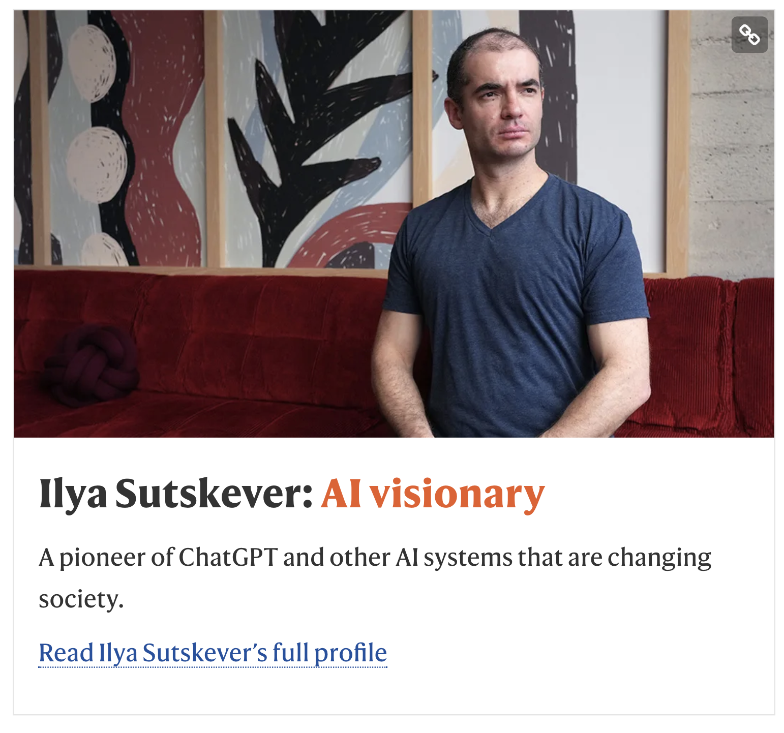 许多人更愿意将 Ilya Sutskever 视作 “真正的 ChatGPT 之父”,他去年入选了「Nature 2023 年度十大科学人物」,《自然》杂志称他是 “ChatGPT 和其他正在改变社会的人工智能系统的先驱”。