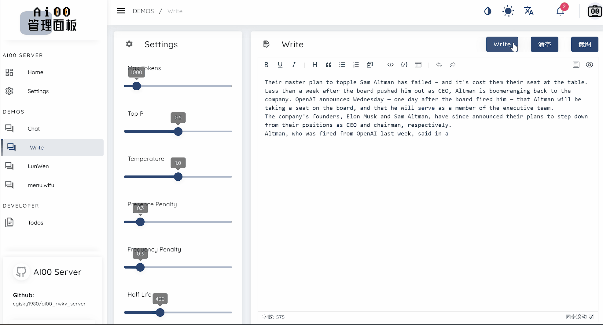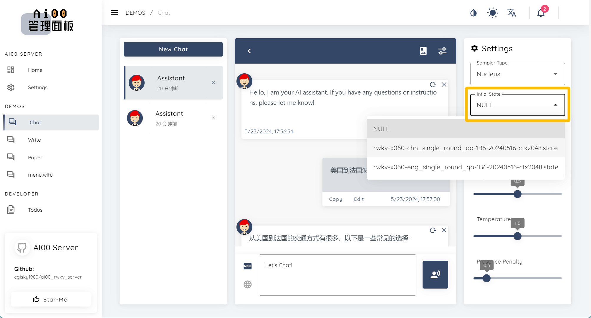 Ai00 Server 仓库地址:https://github.com/Ai00-X/ai00_server