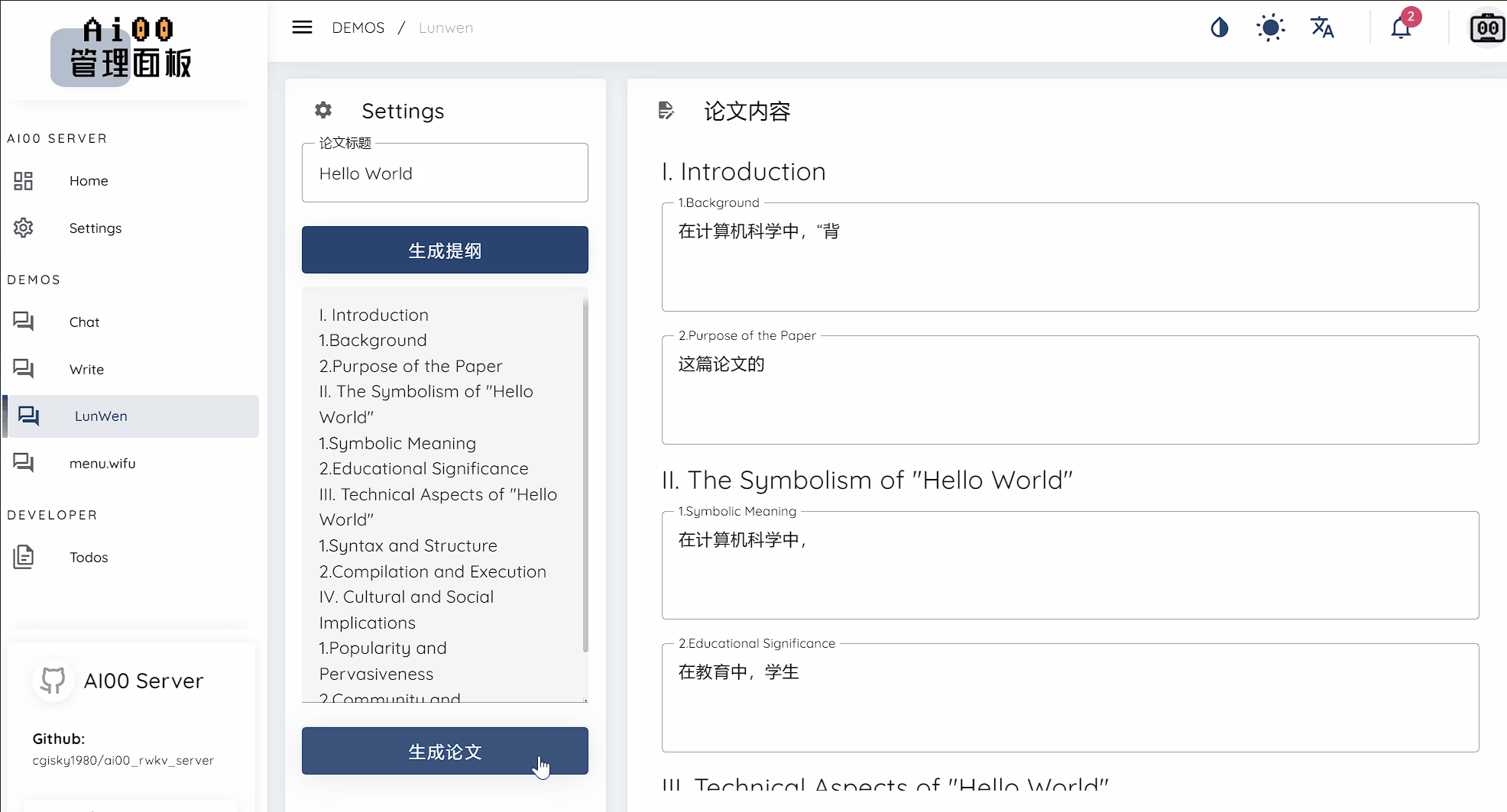 从给定的论文标题生成论文提纲,再根据提纲生成论文内容。