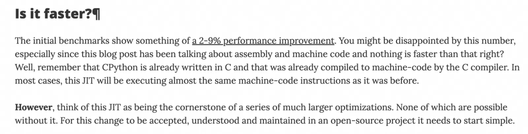 Python: 官方的CPython至今没有一个完善的JIT实现。PyPy可以实现JIT但是工业实践上很少使用。