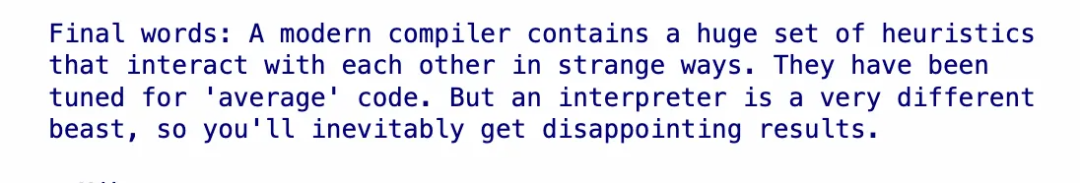 Low-Level Interpreter " 的文章中, 也提到了类似的观点: https://wingolog.org/archives/2012/06/27/inside-javascriptcores-low-level-interpreter
