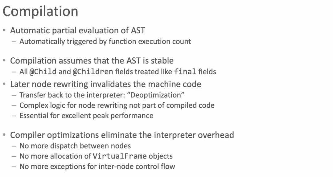 JIT的设计上要能进行和静态编译类似的各类分析优化,比如公共子表达式擦除,数据依赖分析,数据逃逸分析等等。 -