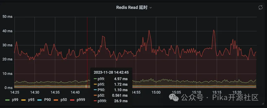 注:以上结果获取时间是 2023 年 11 月,使用的存储引擎是 Blackwidow,此时【2024 年 06 月】我司线上使用 Floyd 存储引擎的 v4.0 版本 Pika 后效果又有大幅度提升。