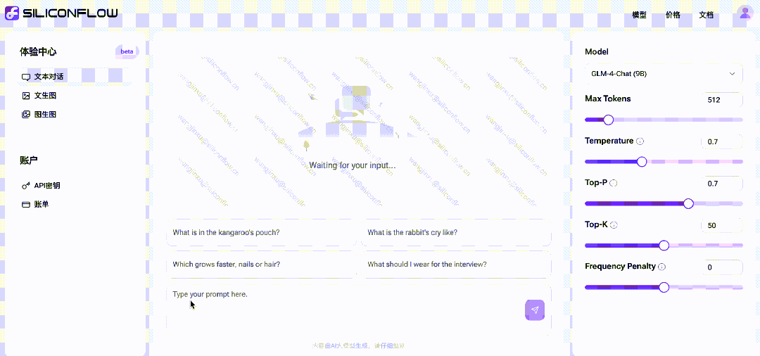 目前,SiliconCloud已上线GLM-4-9B-Chat开源模型。欢迎试用: