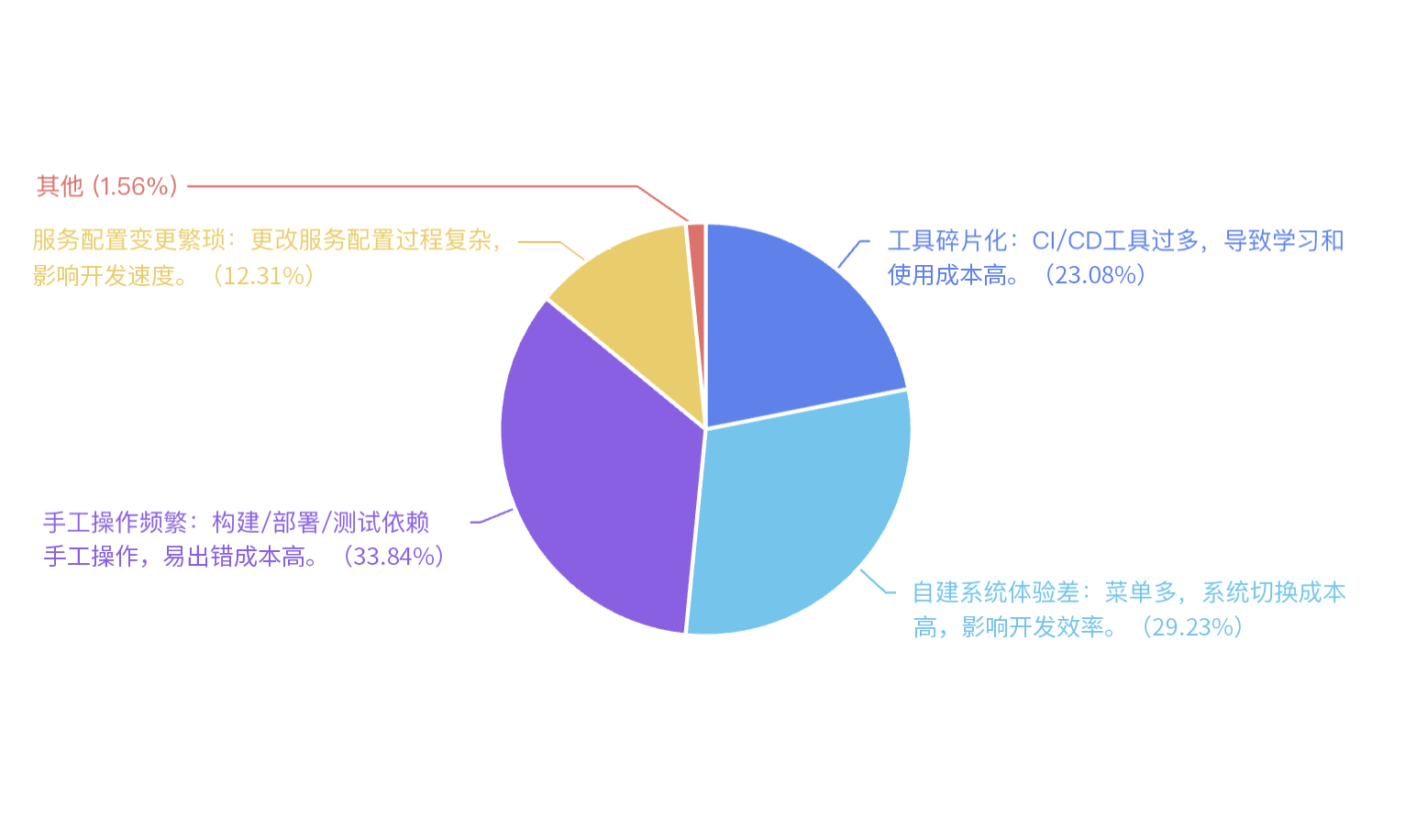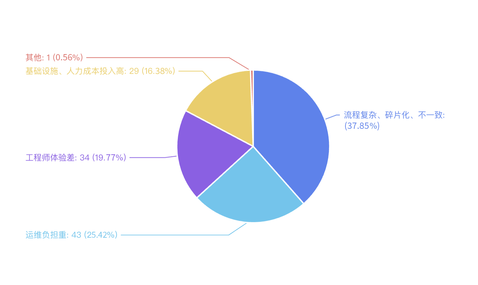 · 工程师体验差(19.77%) :工程师体验差影响了近 20%的用户,主要和配置本身复杂性、频繁的手工操作、系统切换成本高等因素有关。