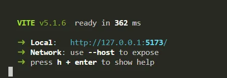 出现以下界面,则说明项目启动成功,Ctrl+鼠标左边单击 http://127.0.0.1:5173/ 从浏览器启动项目