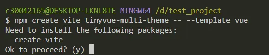 npm create vite[@latest](https://my.oschina.net/u/4418429) tinyvue-multi-theme -- --template vue