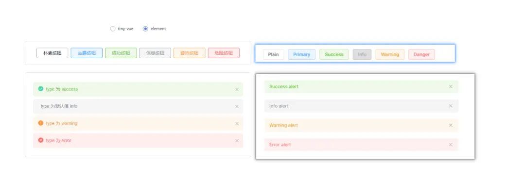 本文由体验技术团队 TinyVue 项目成员岑灌铭创作,欢迎大家实操体验,本实操内容通过实现 TinyVue 中 Button 组件和 Alert 的类 element 主题适配,让开发者感受到 TinyVue 跨设计规范的亮点特性,同时对 TinyVue 组件库多主题的实现原理有个初步的了解。
