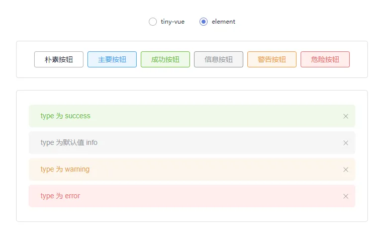 本次实操内容通过实现 TinyVue 中 Button 组件和 Alert 的类 element 主题适配,让开发者感受到 TinyVue 跨设计规范的亮点特性,同时对 TinyVue 组件库多主题的实现原理有个初步的了解。