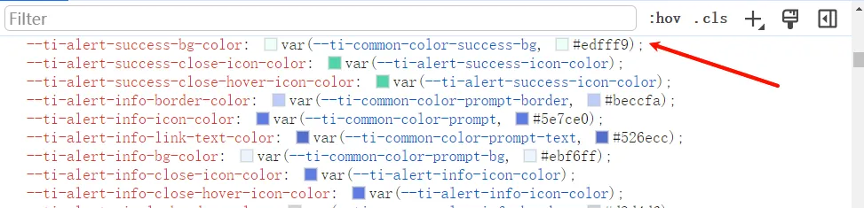 本次实验中 Button 和 Alert 的组件级变量的背景色正是使用的同一个公共变量ti-common-color-success-bg