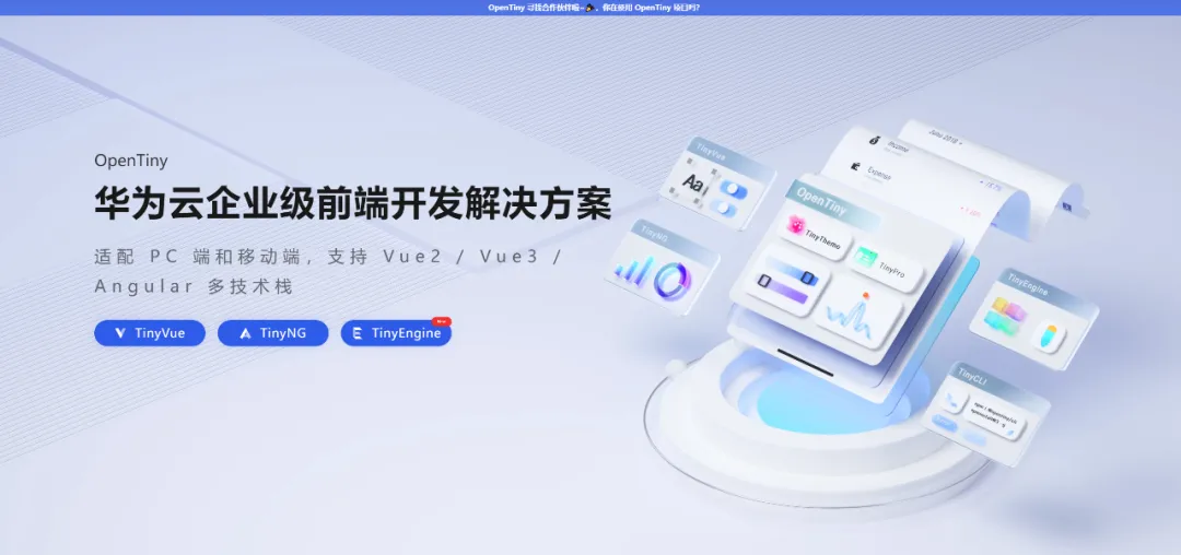OpenTiny 是一套企业级前端开发解决方案,其中包含了组件库、低代码、中后台模板、CLI 命令行等丰富的效率提升工具。其中 TinyVue 是其中一款支持跨端、跨框架以及跨设计规范的组件库。