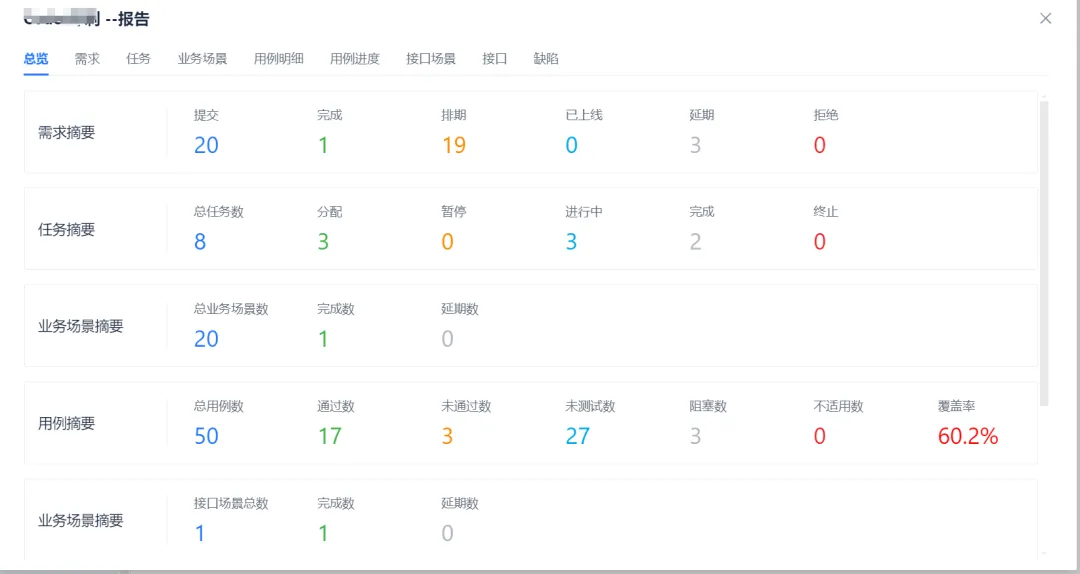 迭代报告可导出来,且迭代设置为完成时自动在项目文档中存一份迭代总结。除总览的TAB外,其他TAB都是明细数据。
