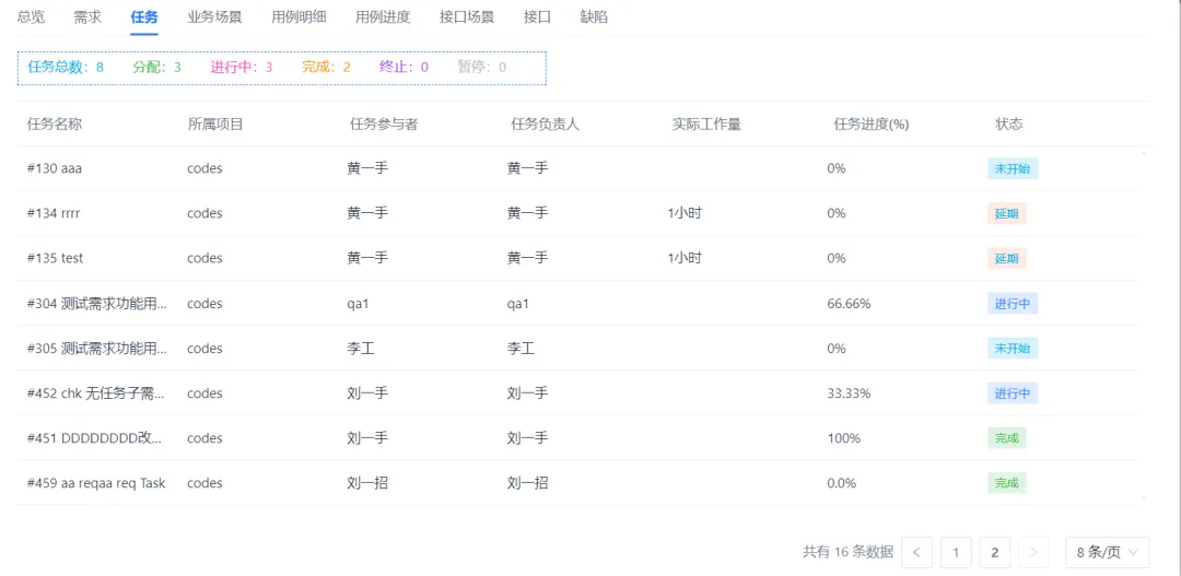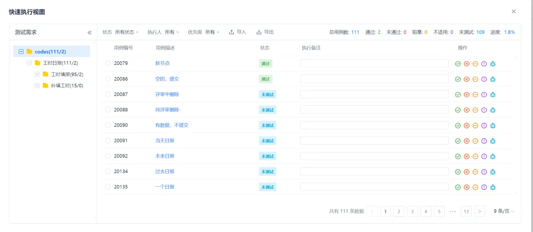 Codes 中,把用例分配到迭代下后,再分配执行人,也就是在同一迭代下,各自有各自要执行的用例,然后可以查看到总进度也能看各自的进度。