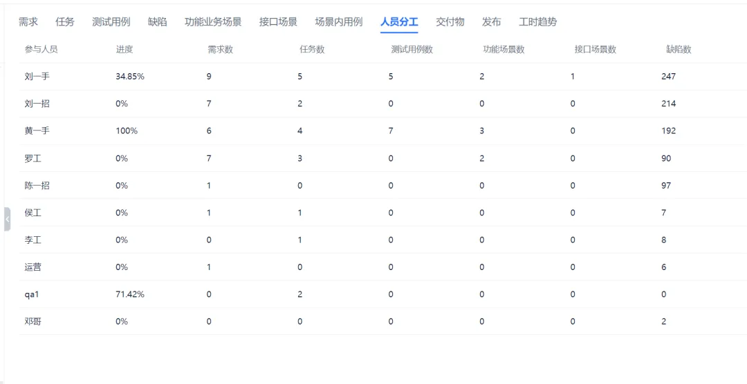 这里可以看迭代下各人员的事项安排及进度