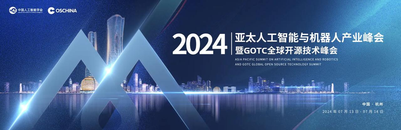 2024 亚太人工智能与机器人产业峰会暨 GOTC 全球开源技术峰会由中国人工智能学会与开源中国联合举办,将于 7 月 13-14 日在杭州隆重举行。本次峰会将汇聚全球顶尖的专家、学者、企业领袖及开源技术代表,深入探讨机器人技术、软件开发、开源技术和 AI 大模型等前沿领域。