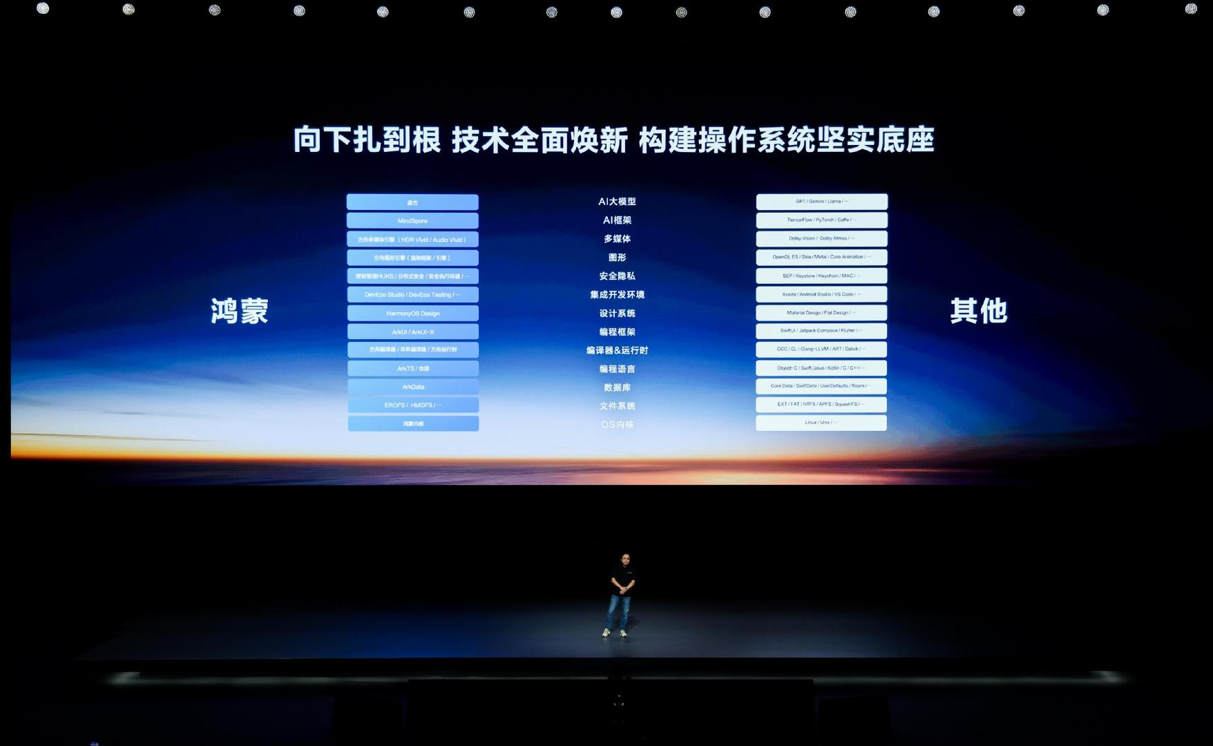 余承东在HDC 2024上再次强调,从操作系统内核、文件系统,到编程语言、编译器/运行时、编程框架,再到设计系统、集成开发环境,以及AI框架和大模型等,纯血鸿蒙实现了全面的突破,也让中国信息技术产业有了自己的根。可以说用十年时间干了欧美同行30多年干的事,实现了操作系统核心技术的自主可控,这是真正的“鸿蒙速度”。