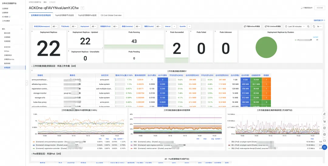 阿里云 ACK One 集成了可观测监控 Prometheus 版,支持用户一键开启全局统一监控。当您同时运行着来自不同供应商、不同地域的多个 K8s 集群时,您可以通过多集群舰队 ACK One Fleet 关联多个集群,达成统一监控的效果。