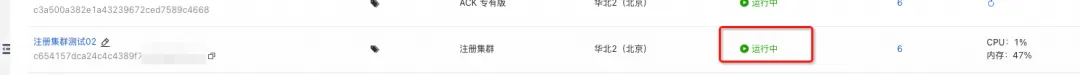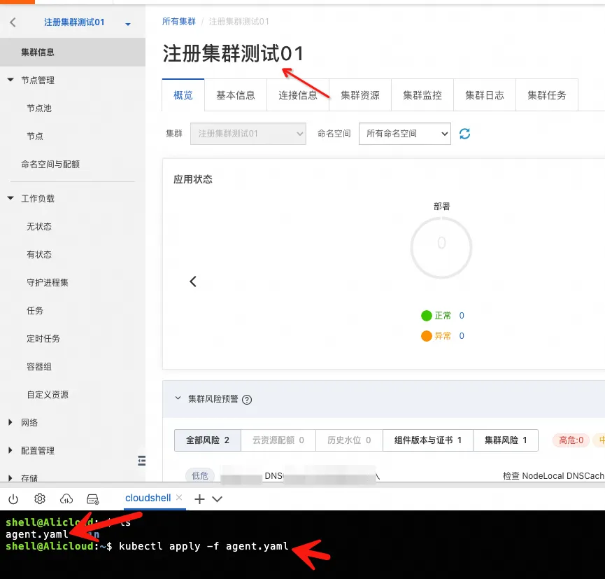 - 目标集群"注册集群测试 01"中可以查看下代理的运行状态。