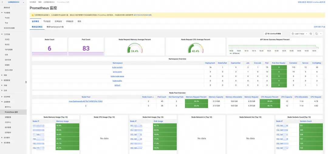 - 简化监控部署与配置: 在纳管后的集群中直接安装阿里云 Prometheus 组件,便捷开启容器监控,减少手动部署和配置监控系统的负担,加速监控体系的建设和完善。