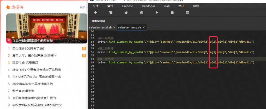 四、使用Airtest-selenium获取网页上的热搜榜并导出标题以及链接