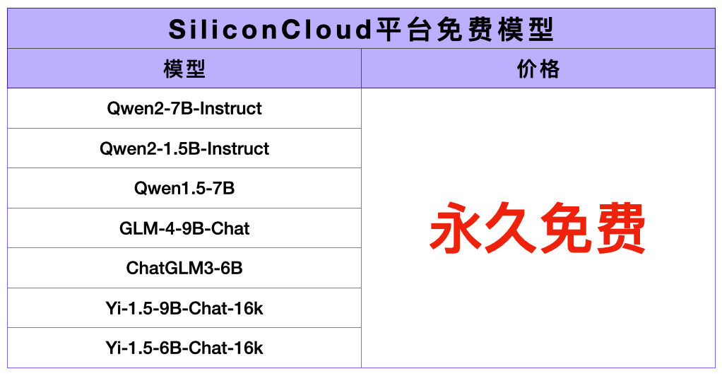 同样在昨天,硅基流动为国内开发者献上一份前所未有的大礼:Qwen2 (7B)、GLM4 (9B)、Yi1.5(9B)等顶尖开源大模型永久免费。