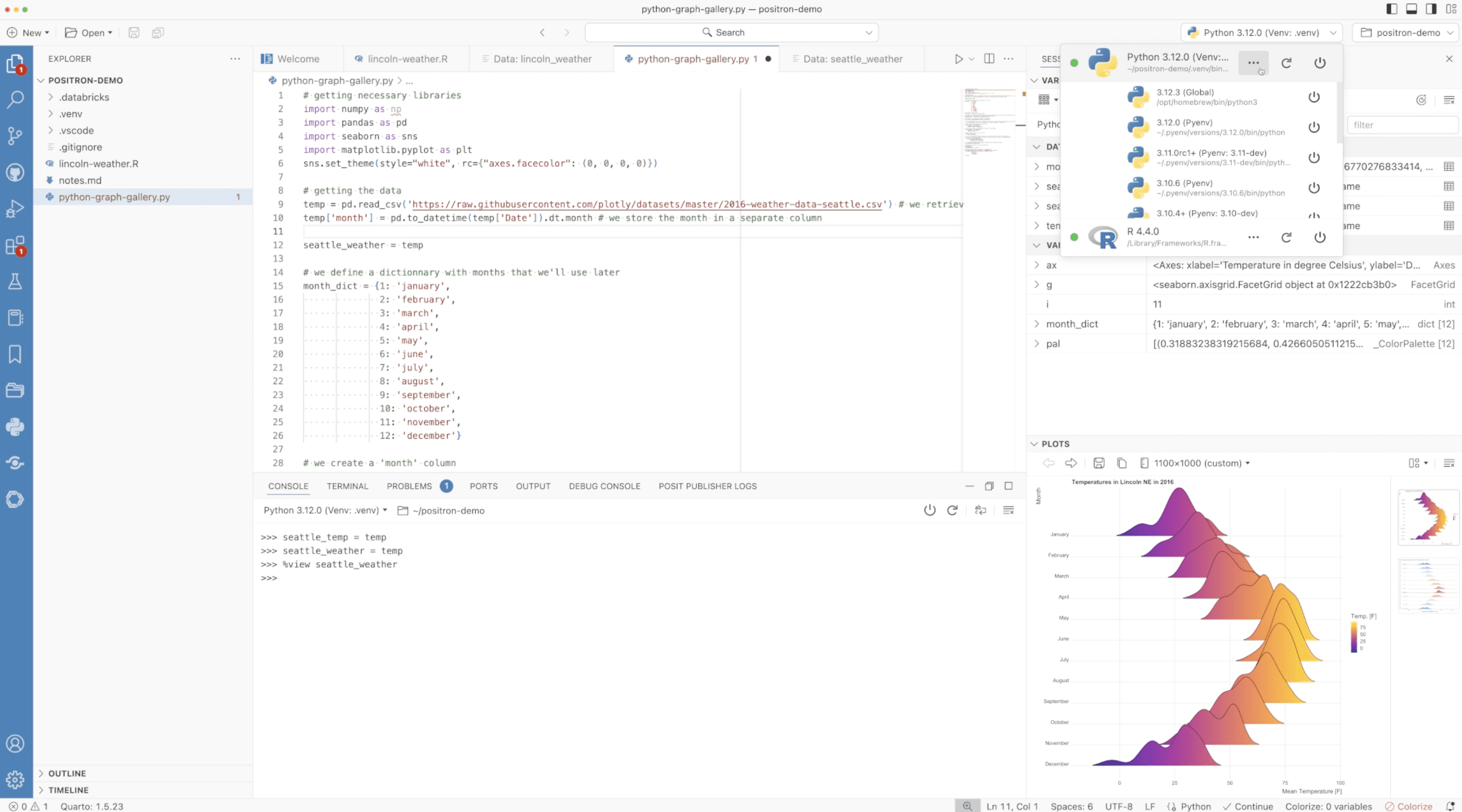 这是一个为数据分析设计的集成开发环境,它基于 VSCode 构建了一个可复制的编写和发布的桌面开发环境,支持运行 Python 和 R 代码、自动补全等功能,适用于数据科学家和分析师进行数据处理和分析。