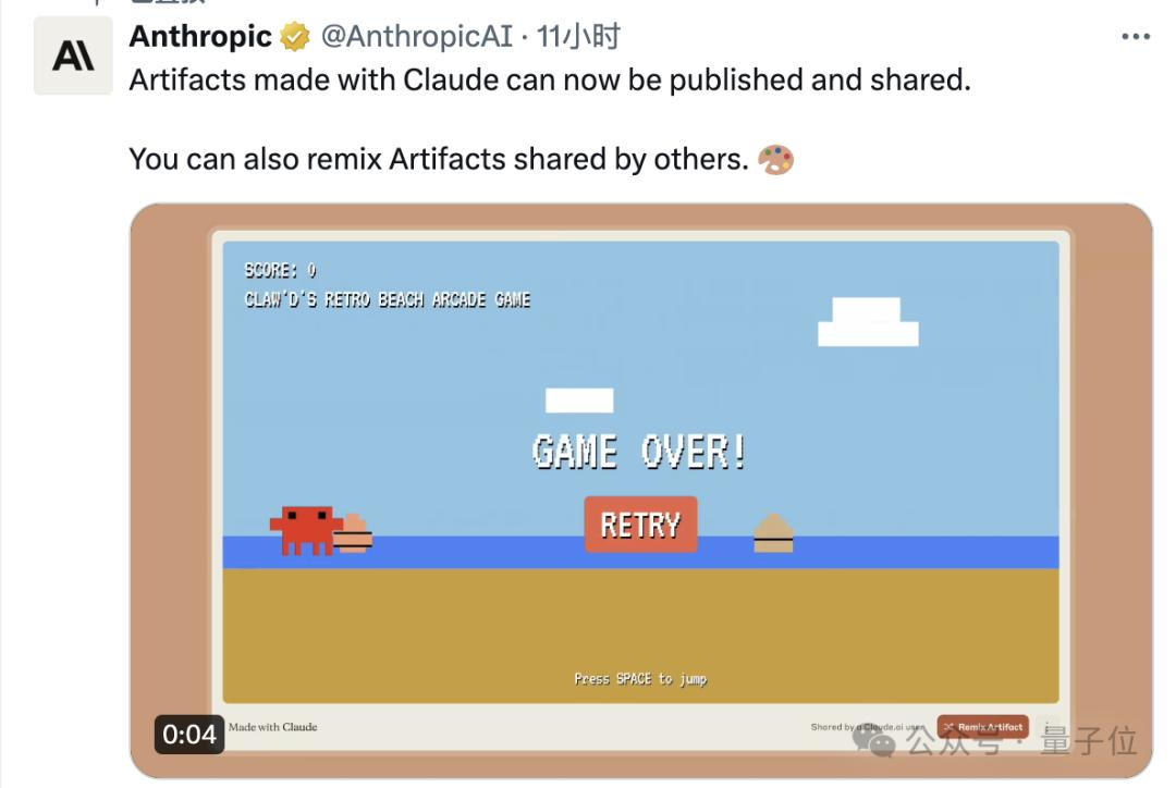 Claude 3.5上新的“工坊模式”(Artifacts)再次更新,写完的网页应用支持一键分享了!不用自建服务器,不用部署后台程序,点一下就能自动获得链接。