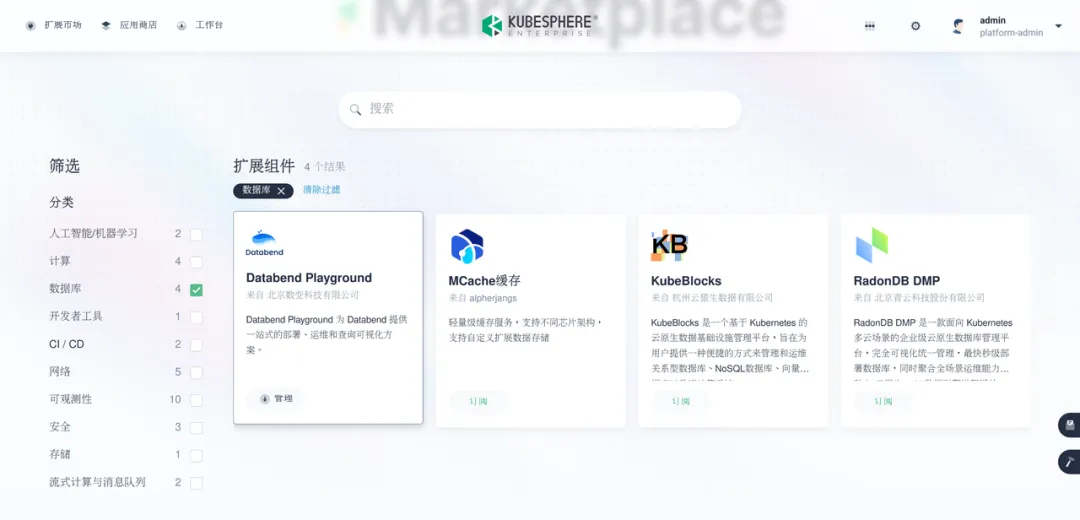 如果你想要在全新的 KubeSphere 企业版 4.1.1 上体验 Databend ,我们提供两种经过验证的解决方案: