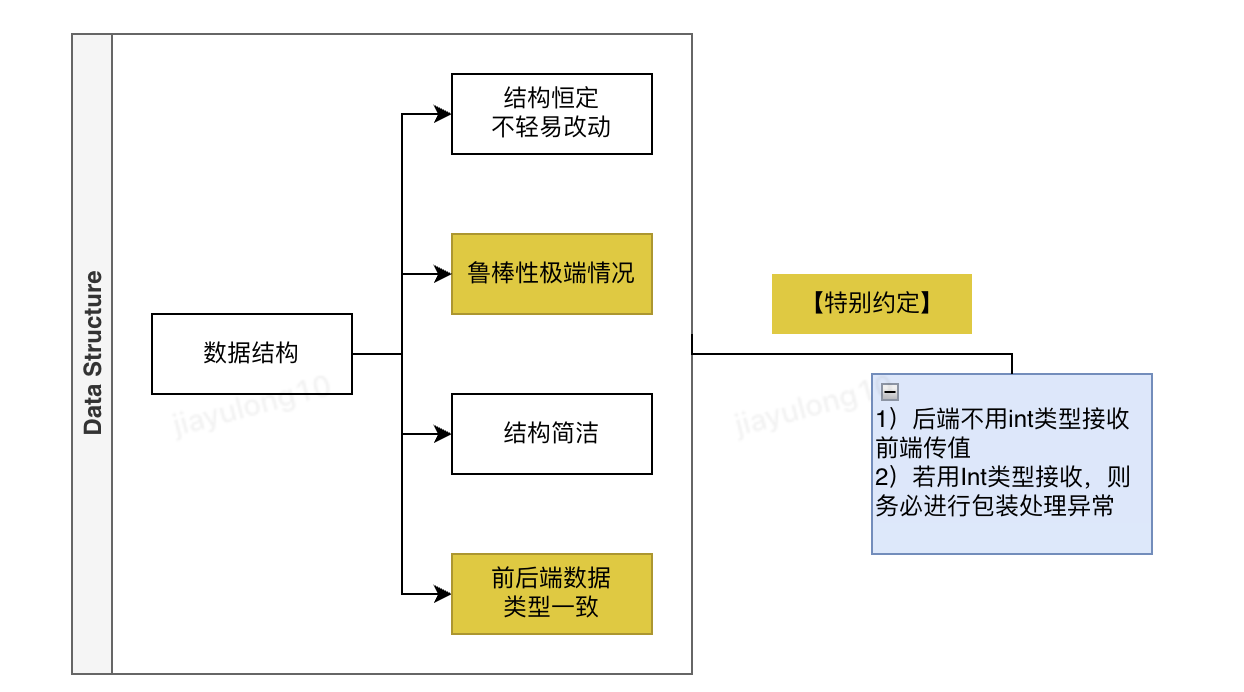 1. 数据结构恒定性:前后端约定好的字段和类型不应轻易改动,若有改动需及时提前告知对方。