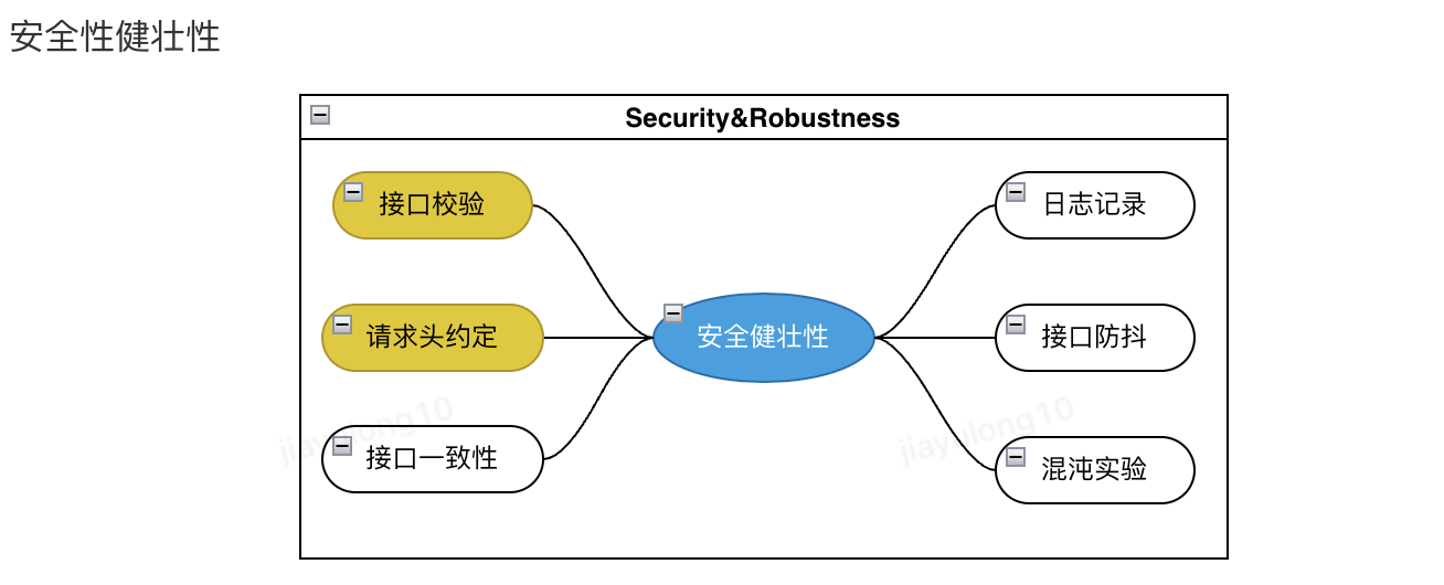 2. 鲁棒边缘性设计:接口需考虑极端情况下的限定,定义必须清楚(如不同类型字段为空时,为null时,为无穷大时,为负时等)。