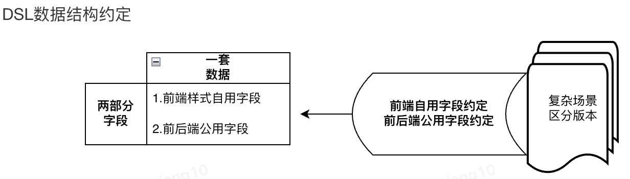 • 对于前后端都需要使用的dsl数据,尽可能把数据分成实体数据和展示数据两部分,前后端需共同维护实体数据;尤其单线流程场景。如领航者的流程编排。