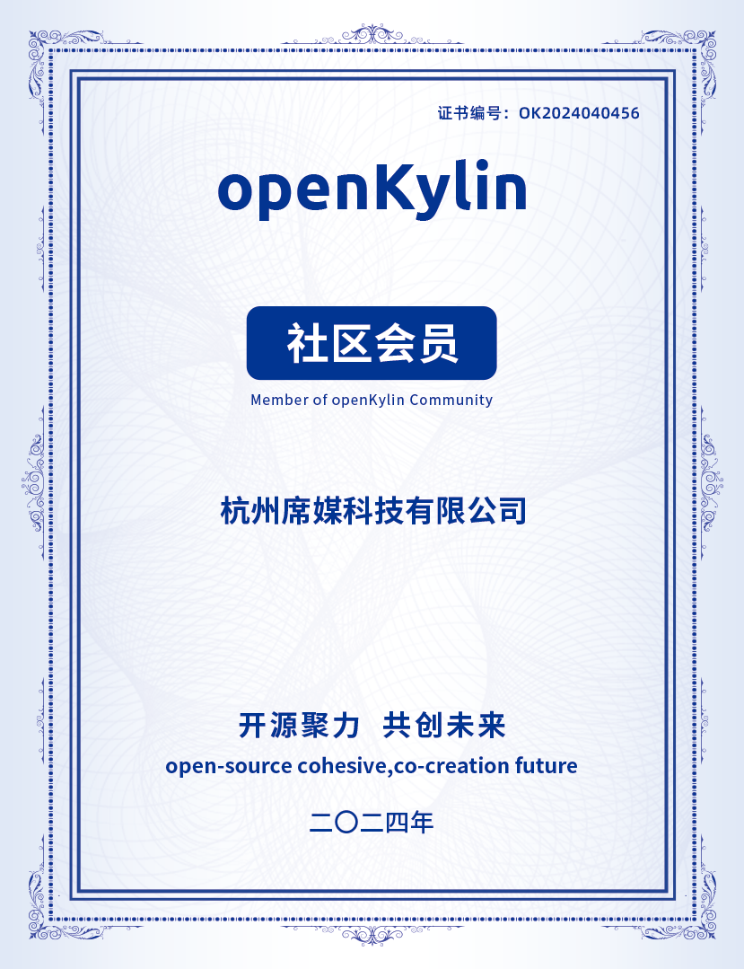 近日,杭州席媒科技有限公司(简称“席媒科技”)签署了openKylin社区CLA(Contributor License Agreement贡献者许可协议),正式加入openKylin开源社区。